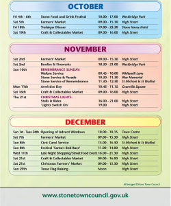 Councillor Jill Hood, Chairman of the Council’s Tourism and Town Promotion Sub-Committee, said “I am pleased to be able to present such an exciting, full and varied range of free events. There should be something for everyone, and I hope that they help to bring both local residents and visitors into the town”.